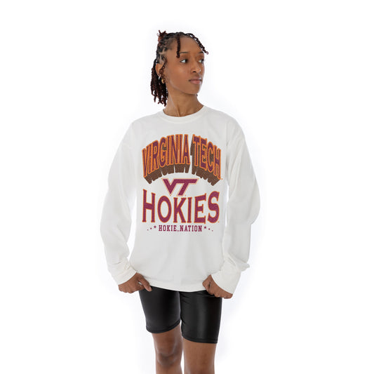 VIRGINIA TECH HOKIES TIME OUT OVERSIZED MIDWEIGHT LONG SLEEVE TEE WITH RIBBED NECKLINE AND CUFFS