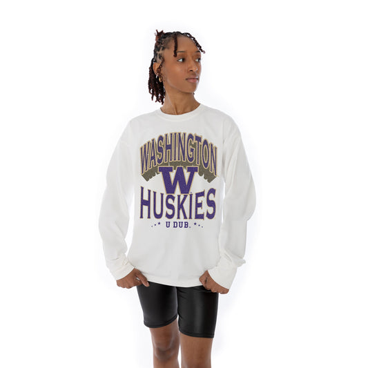 WASHINGTON HUSKIES TIME OUT OVERSIZED MIDWEIGHT LONG SLEEVE TEE WITH RIBBED NECKLINE AND CUFFS