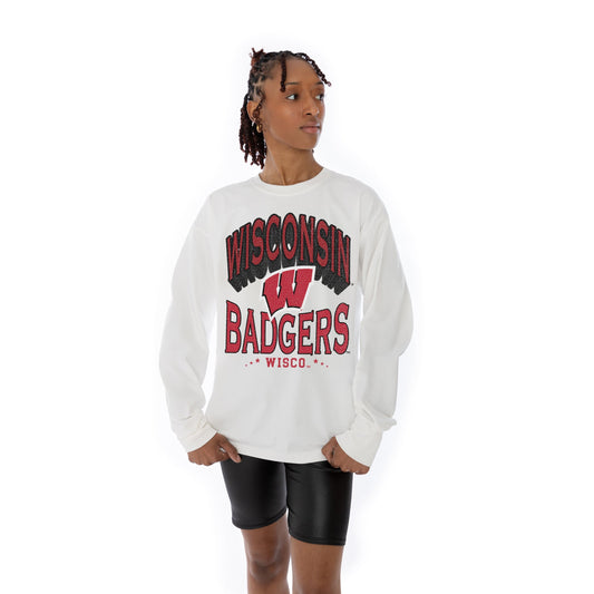 WISCONSIN BADGERS TIME OUT OVERSIZED MIDWEIGHT LONG SLEEVE TEE WITH RIBBED NECKLINE AND CUFFS