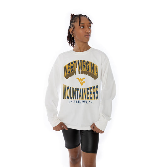 WEST VIRGINIA MOUNTAINEERS TIME OUT OVERSIZED MIDWEIGHT LONG SLEEVE TEE WITH RIBBED NECKLINE AND CUFFS