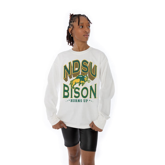 NORTH DAKOTA STATE BISON TIME OUT OVERSIZED MIDWEIGHT LONG SLEEVE TEE WITH RIBBED NECKLINE AND CUFFS