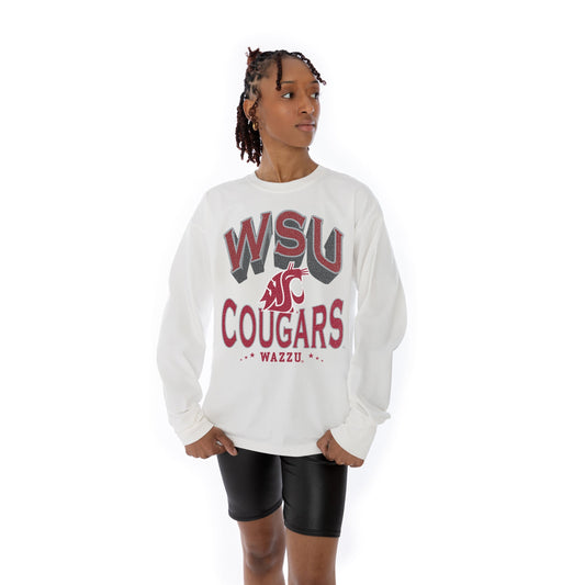 WASHINGTON STATE COUGARS TIME OUT OVERSIZED MIDWEIGHT LONG SLEEVE TEE WITH RIBBED NECKLINE AND CUFFS