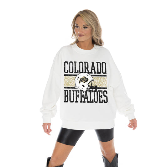 COLORADO BUFFALOES FAIR CATCH LONG SLEEVE UNISEX FIT PREMIUM FLEECE CREWNECK SWEATSHIRT WITH RIBBED KNIT NECKLINE, WRIST, AND WAISTBAND
