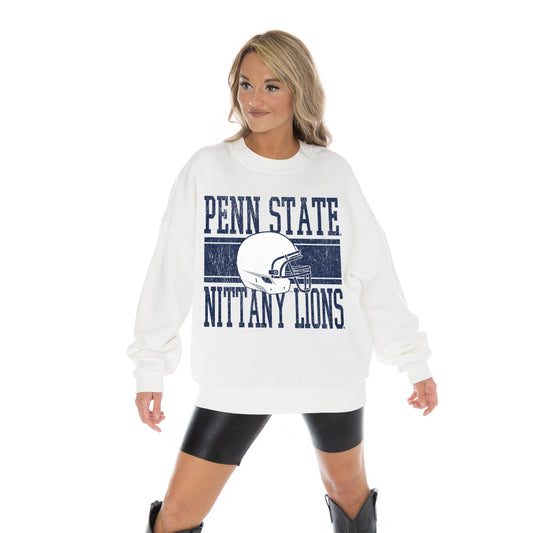 PENN STATE NITTANY LIONS FAIR CATCH LONG SLEEVE UNISEX FIT PREMIUM FLEECE CREWNECK SWEATSHIRT WITH RIBBED KNIT NECKLINE, WRIST, AND WAISTBAND
