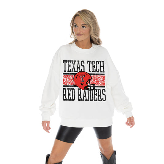 TEXAS TECH RED RAIDERS FAIR CATCH LONG SLEEVE UNISEX FIT PREMIUM FLEECE CREWNECK SWEATSHIRT WITH RIBBED KNIT NECKLINE, WRIST, AND WAISTBAND
