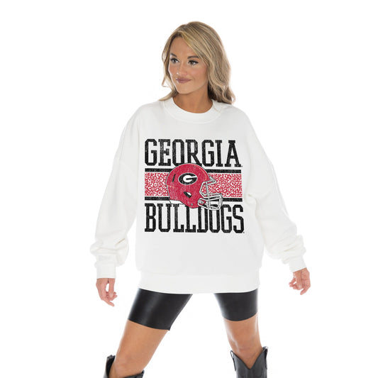 GEORGIA BULLDOGS FAIR CATCH LONG SLEEVE UNISEX FIT PREMIUM FLEECE CREWNECK SWEATSHIRT WITH RIBBED KNIT NECKLINE, WRIST, AND WAISTBAND