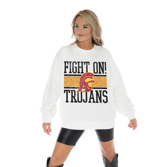 USC TROJANS FAIR CATCH LONG SLEEVE UNISEX FIT PREMIUM FLEECE CREWNECK SWEATSHIRT WITH RIBBED KNIT NECKLINE, WRIST, AND WAISTBAND