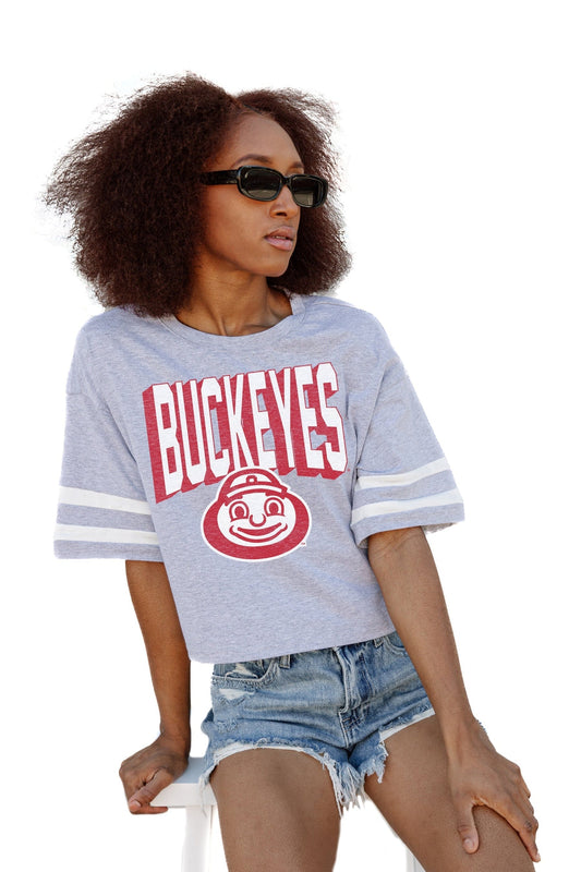 OHIO STATE BUCKEYES NO SHORTCUTS DROP SHOULDER MID-CROP TEE