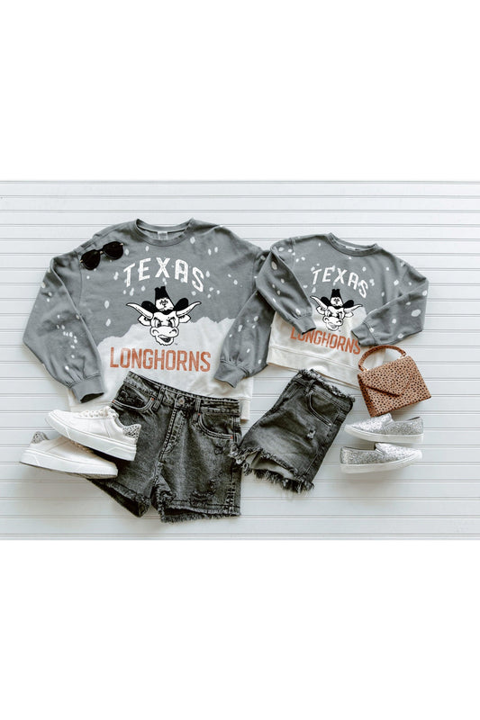 TEXAS LONGHORNS KIDS BLEACH DYE FADED CREWNECK SWEATSHIRT