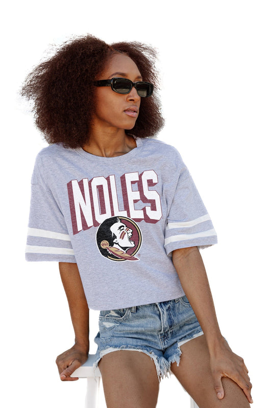 FLORIDA STATE SEMINOLES NO SHORTCUTS DROP SHOULDER MID-CROP TEE