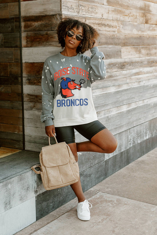BOISE STATE BRONCOS UPCYCLE AND VINTAGE FADED WASH CREWNECK PULLOVER