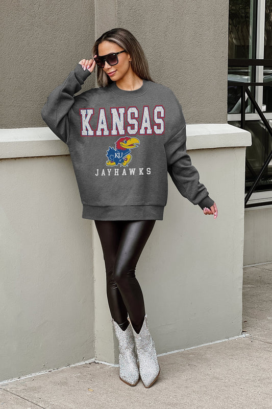 KANSAS JAYHAWKS EASY STREET PREMIUM FLEECE DROP SHOULDER CREWNECK PULLOVER