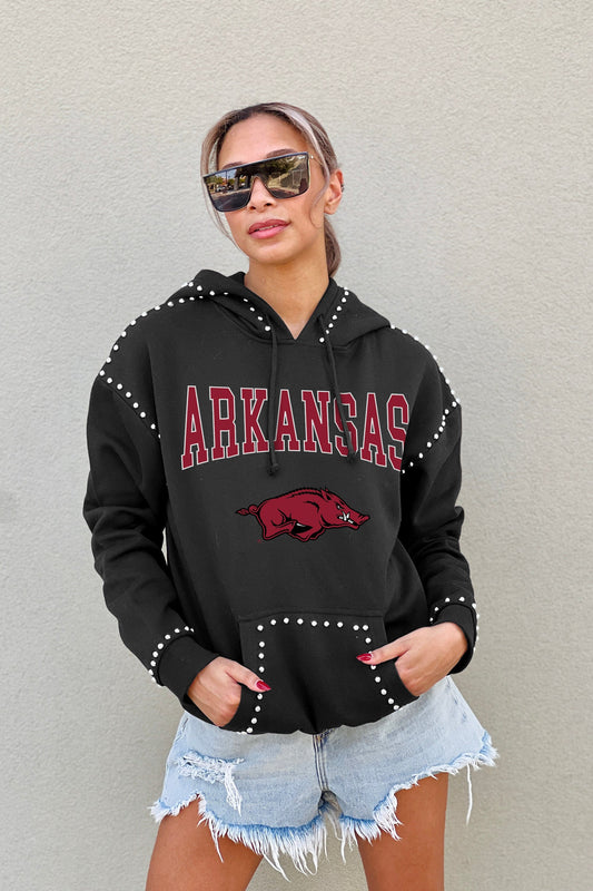 ARKANSAS RAZORBACKS BELLE OF THE BALL STUDDED DETAIL FLEECE FRONT POCKET HOODIE