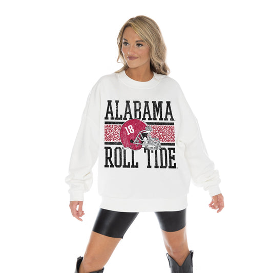ALABAMA CRIMSON TIDE FAIR CATCH LONG SLEEVE UNISEX FIT PREMIUM FLEECE CREWNECK SWEATSHIRT WITH RIBBED KNIT NECKLINE, WRIST, AND WAISTBAND