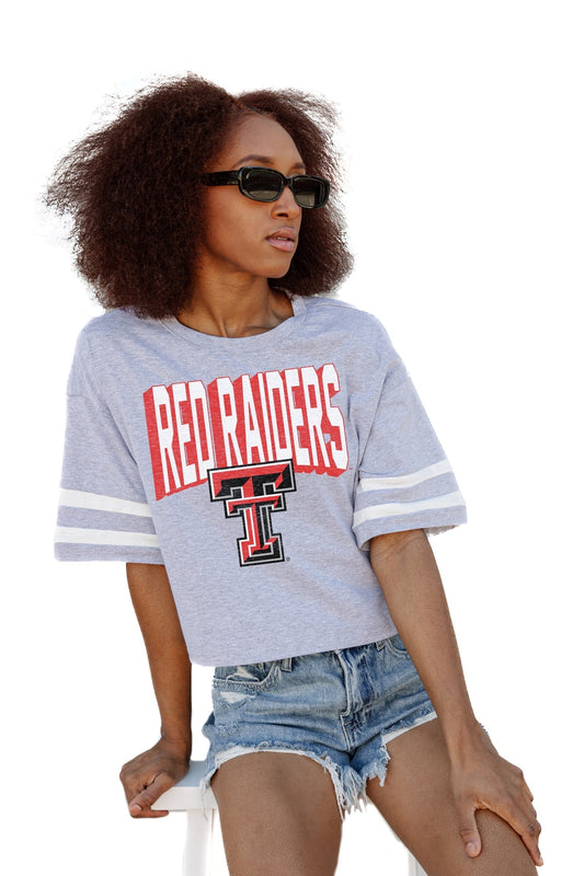 TEXAS TECH RED RAIDERS NO SHORTCUTS DROP SHOULDER MID-CROP TEE
