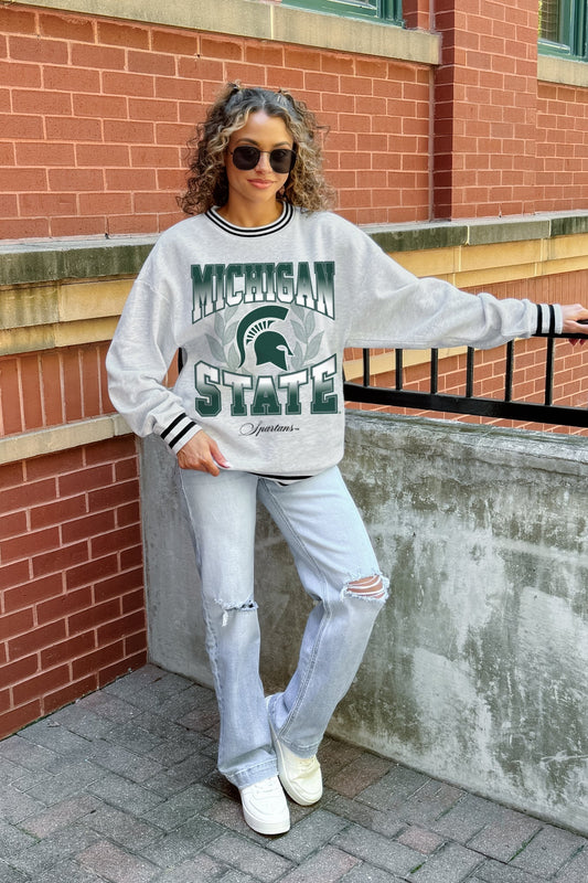 MICHIGAN STATE SPARTANS FADE ROUTE CREW FLEECE RINGER SWEATSHIRT