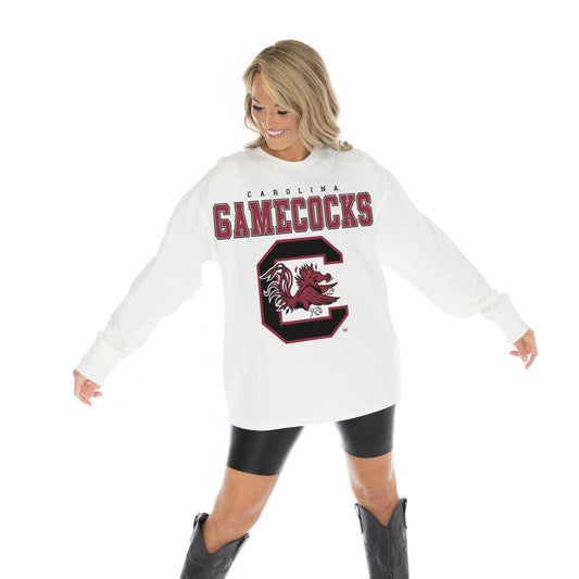 SOUTH CAROLINA GAMECOCKS BIG GOALS OVERSIZED MIDWEIGHT LONG SLEEVE TEE WITH RIBBED NECKLINE AND CUFFS