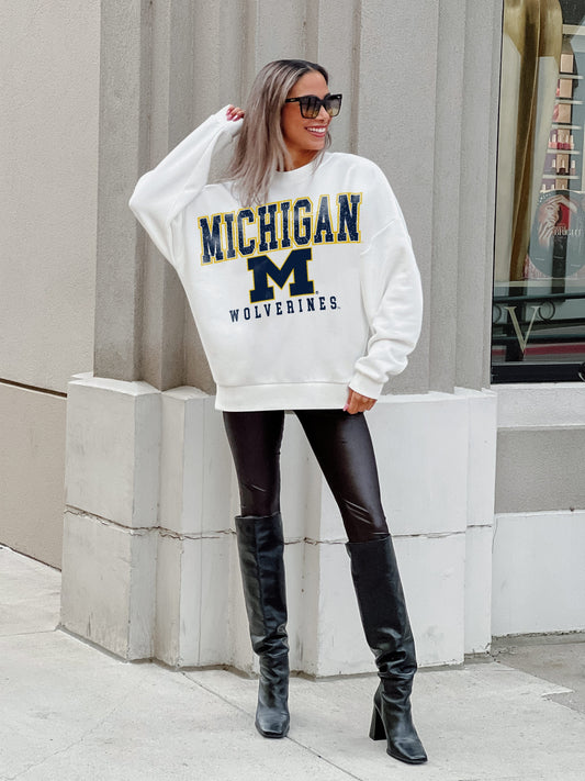 MICHIGAN WOLVERINES FREESTYLE PREMIUM FLEECE DROP SHOULDER CREWNECK PULLOVER