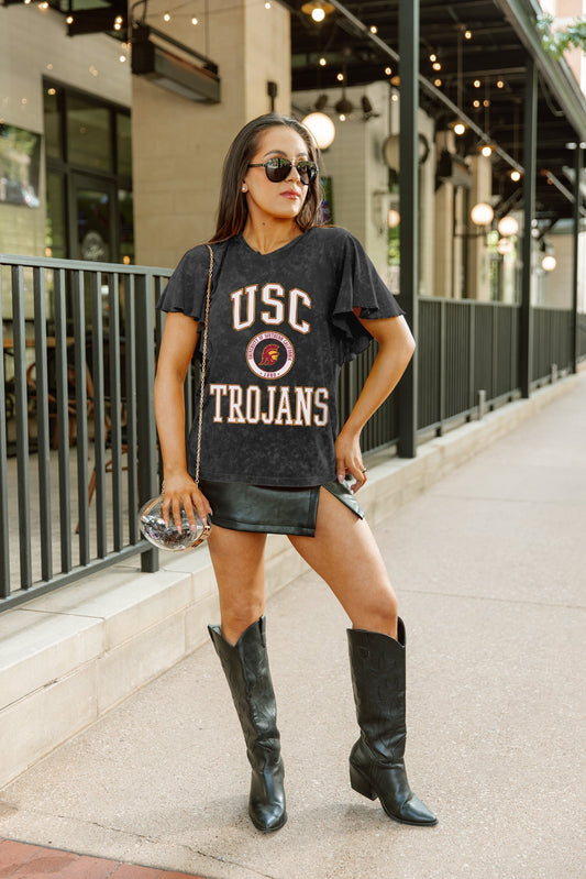 USC TROJANS VICTORY MODE FLUTTER SLEEVE TEE IN BLACK