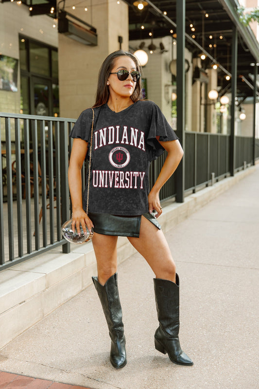INDIANA HOOSIERS VICTORY MODE FLUTTER SLEEVE TEE IN BLACK