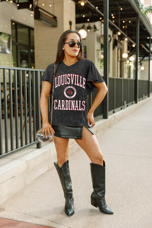 LOUISVILLE CARDINALS VICTORY MODE FLUTTER SLEEVE TEE IN BLACK