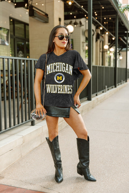 MICHIGAN WOLVERINES VICTORY MODE FLUTTER SLEEVE TEE IN BLACK