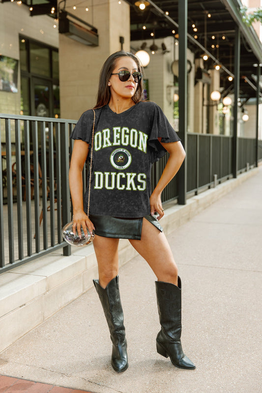 OREGON DUCKS VICTORY MODE FLUTTER SLEEVE TEE IN BLACK