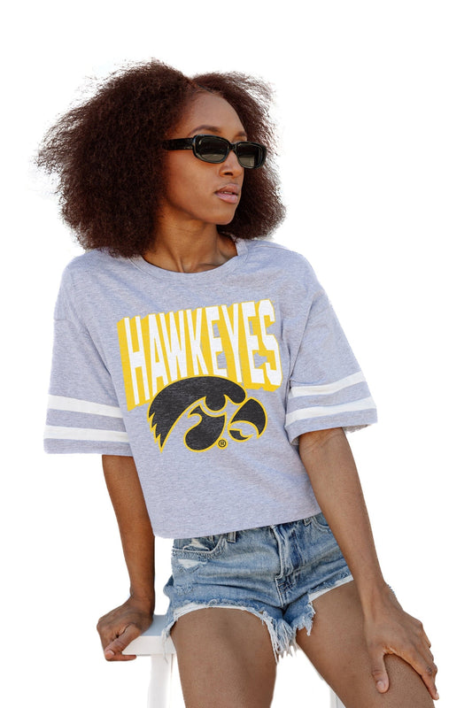 IOWA HAWKEYES NO SHORTCUTS DROP SHOULDER MID-CROP TEE