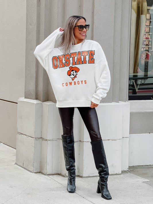 OKLAHOMA STATE COWBOYS FREESTYLE PREMIUM FLEECE DROP SHOULDER CREWNECK PULLOVER