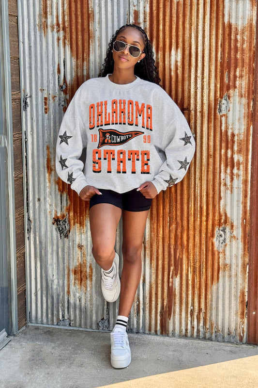 OKLAHOMA STATE COWBOYS PENNANT PRIDE EMBELLISHED STAR SLEEVE CREWNECK PULLOVER