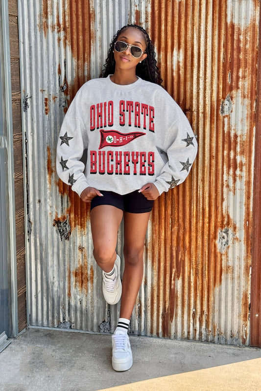 OHIO STATE BUCKEYES PENNANT PRIDE EMBELLISHED STAR SLEEVE CREWNECK PULLOVER