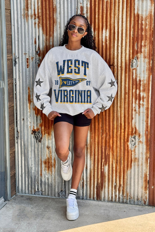 WEST VIRGINIA MOUNTAINEERS PENNANT PRIDE EMBELLISHED STAR SLEEVE CREWNECK PULLOVER
