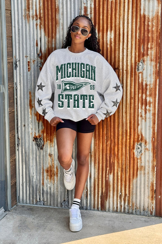 MICHIGAN STATE SPARTANS PENNANT PRIDE EMBELLISHED STAR SLEEVE CREWNECK PULLOVER