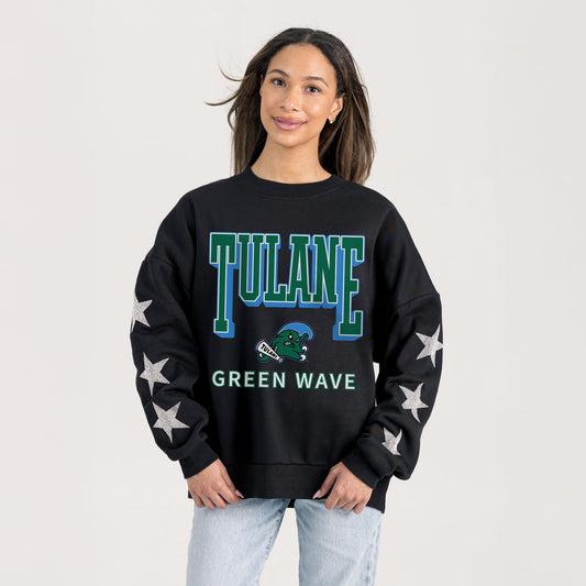 TULANE GREEN WAVE PURE VICTORY EMBELLISHED STAR SLEEVE CREWNECK PULLOVER