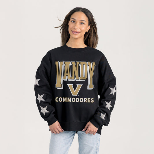 VANDERBILT COMMODORES PURE VICTORY EMBELLISHED STAR SLEEVE CREWNECK PULLOVER