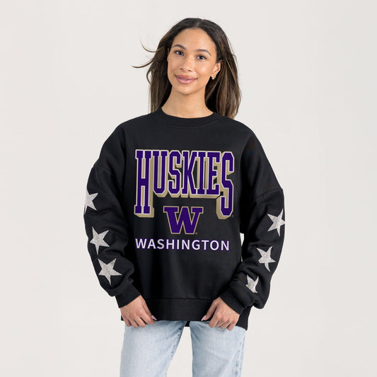 WASHINGTON HUSKIES PURE VICTORY EMBELLISHED STAR SLEEVE CREWNECK PULLOVER