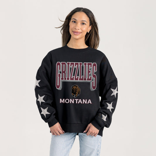 MONTANA GRIZZLIES PURE VICTORY EMBELLISHED STAR SLEEVE CREWNECK PULLOVER