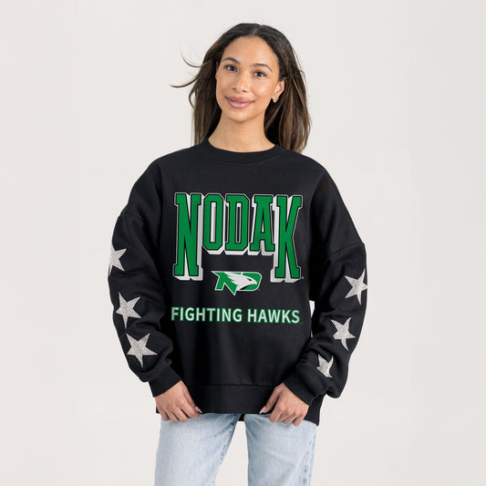 NORTH DAKOTA FIGHTING HAWKS PURE VICTORY EMBELLISHED STAR SLEEVE CREWNECK PULLOVER