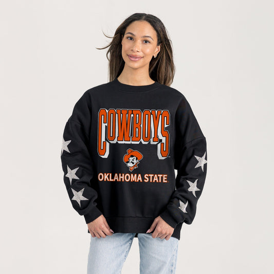 OKLAHOMA STATE COWBOYS PURE VICTORY EMBELLISHED STAR SLEEVE CREWNECK PULLOVER