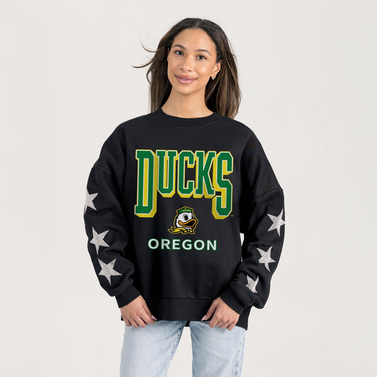 OREGON DUCKS PURE VICTORY EMBELLISHED STAR SLEEVE CREWNECK PULLOVER