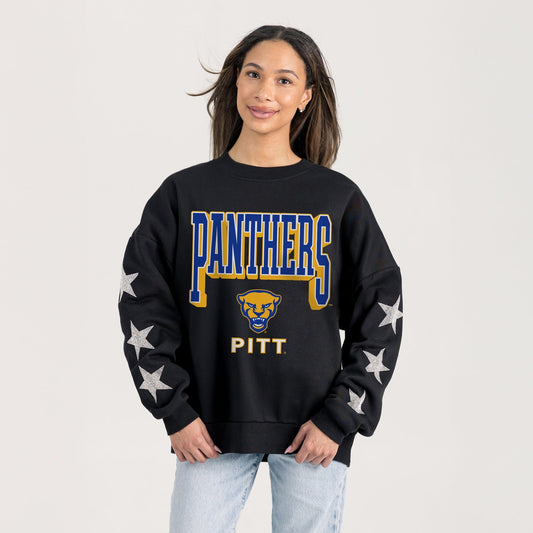 PITTSBURGH PANTHERS PURE VICTORY EMBELLISHED STAR SLEEVE CREWNECK PULLOVER