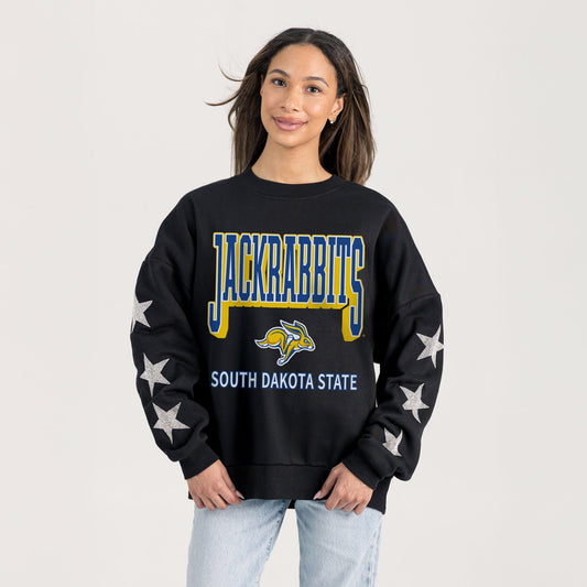 SOUTH DAKOTA STATE JACKRABBITS PURE VICTORY EMBELLISHED STAR SLEEVE CREWNECK PULLOVER