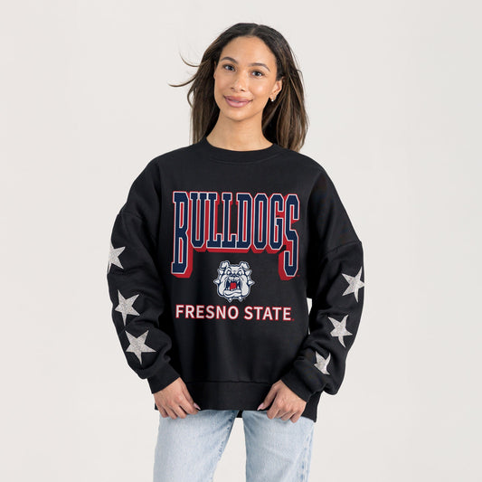 FRESNO STATE BULLDOGS PURE VICTORY EMBELLISHED STAR SLEEVE CREWNECK PULLOVER