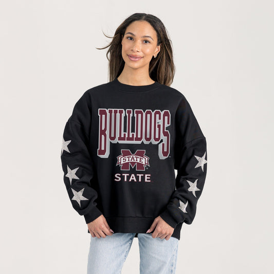 MISSISSIPPI STATE BULLDOGS PURE VICTORY EMBELLISHED STAR SLEEVE CREWNECK PULLOVER