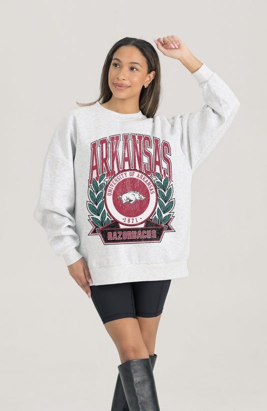 ARKANSAS RAZORBACKS HERITAGE PREMIUM FLEECE DROP SHOULDER CREWNECK PULLOVER