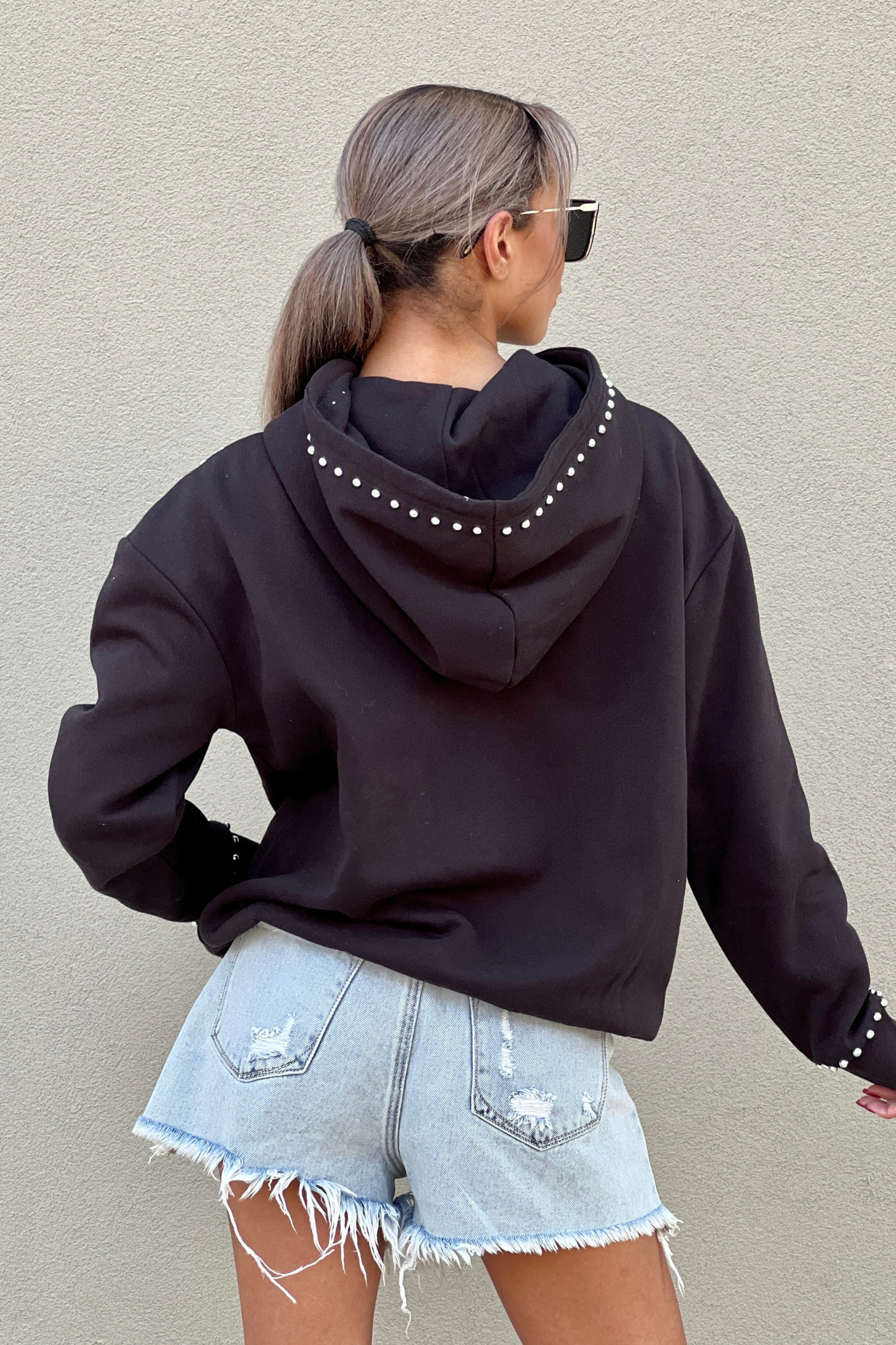 This stylish hoodie is perfect for any occasion. The soft fleece fabric is detailed with studs for a unique and edgy look. The front pocket adds a practical touch, while the drawstring hood keeps you warm and cozy. The perfect combination of fashion and function, this hoodie is sure to be a hit!