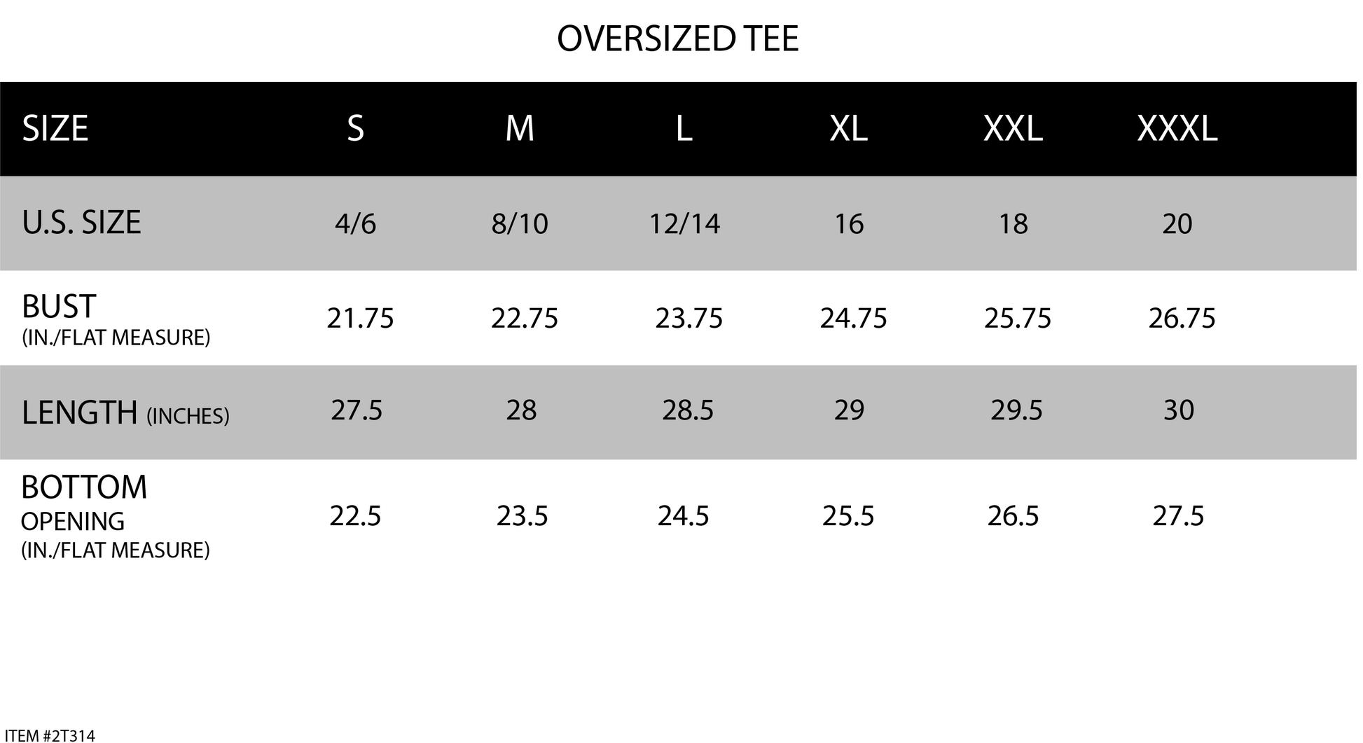 The model is wearing size small. Please refer to our size chart to find your perfect fit. The tee is designed for an oversized fit, making it easy to layer with your favorite jacket or cardigan.